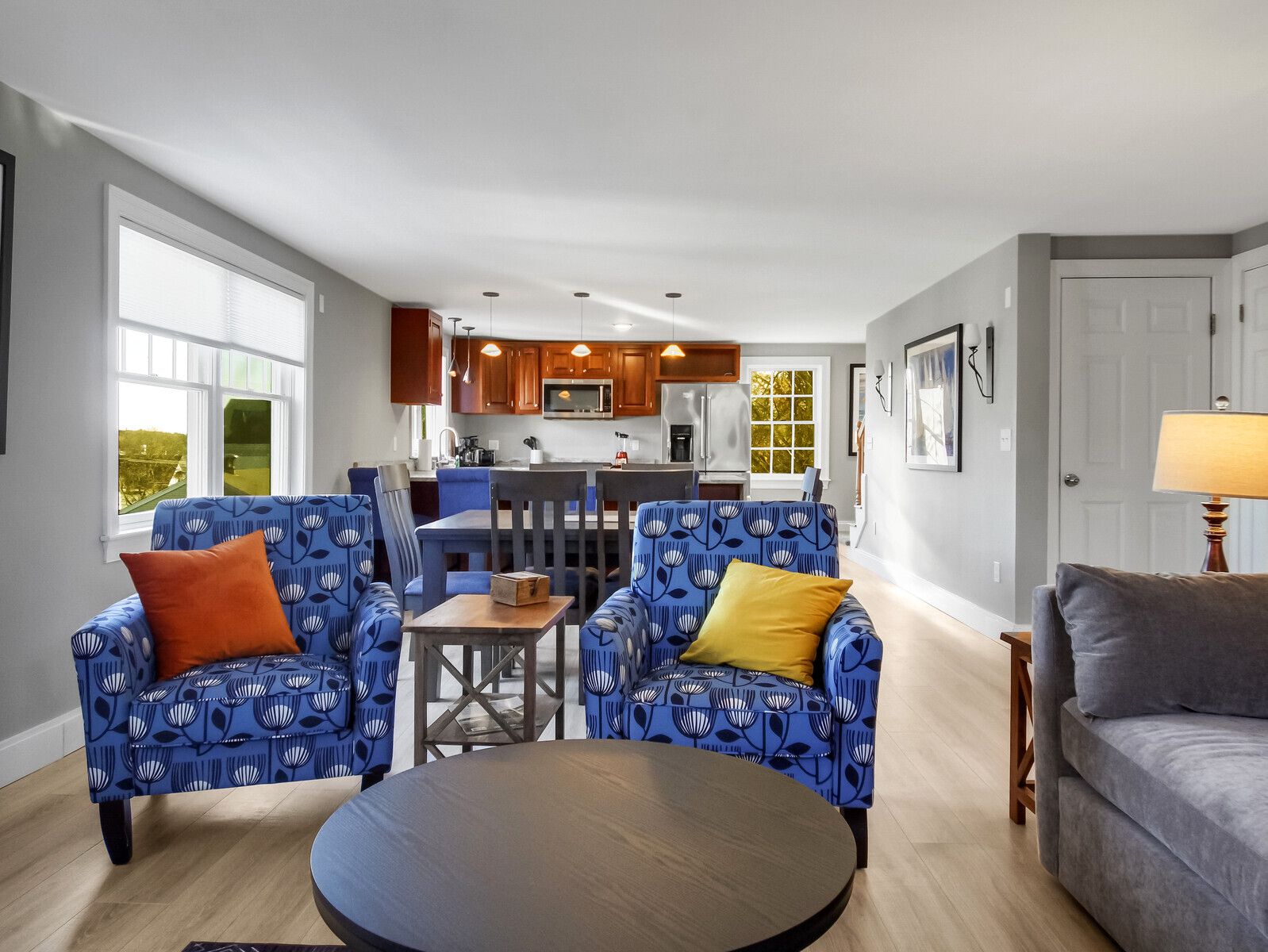 An expansive suite, the Crow's Nest, can easily accommodate families and groups. Equipped with a full kitchen, regal king-sized bed, two twin beds, and a pull-out sleeper sofa. Enjoy the natural light and scenic views of this coastal dream suite. 2-story unit.