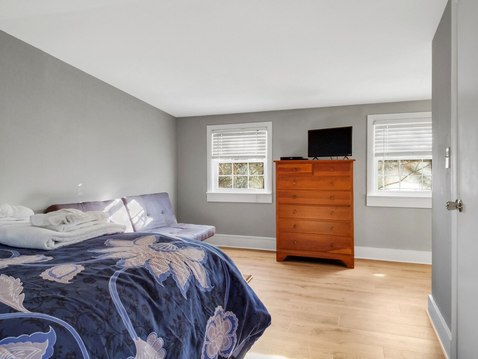 Victory Chimes offers a spacious and tranquil retreat. Relax in the large king-size bed, rejuvenate in the generous bathroom with a delightful tub/shower combination, and enjoy the modern amenities for a comfortable stay. Ground floor.